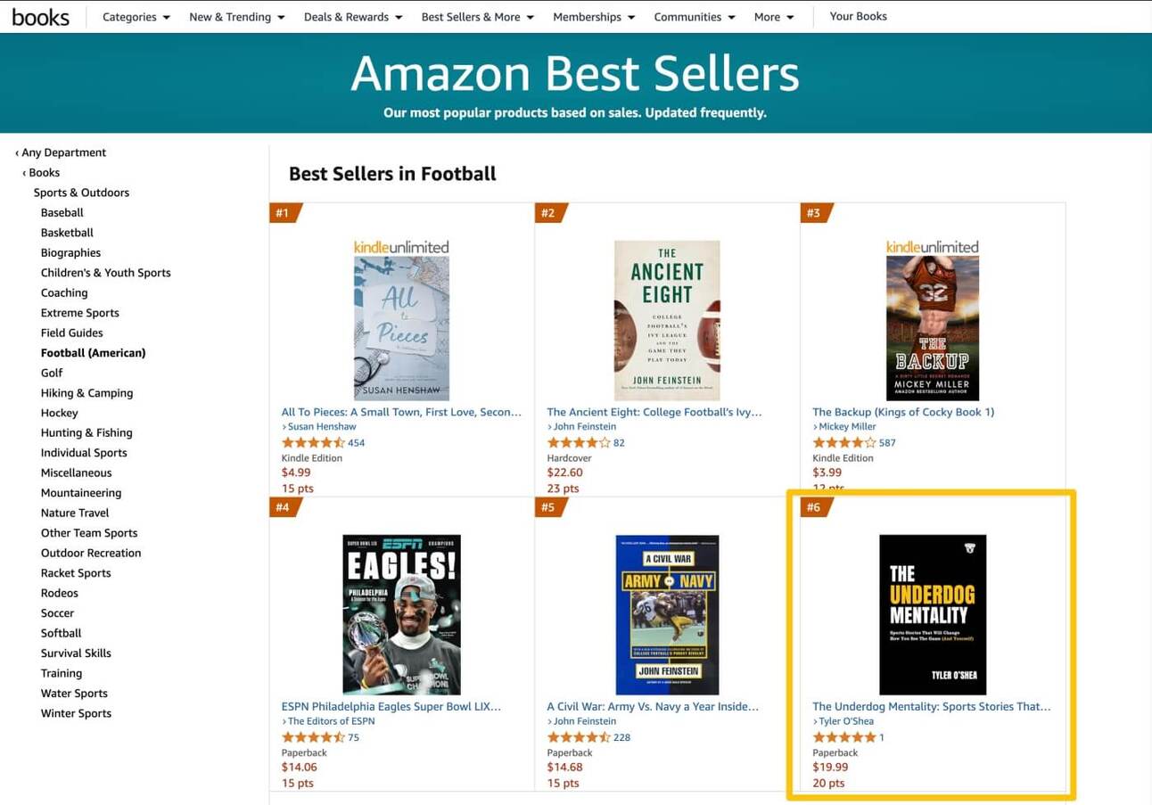 We’ve surged past authors like Tom Brady, Deion Sanders, and Hall of Fame sports writers.
