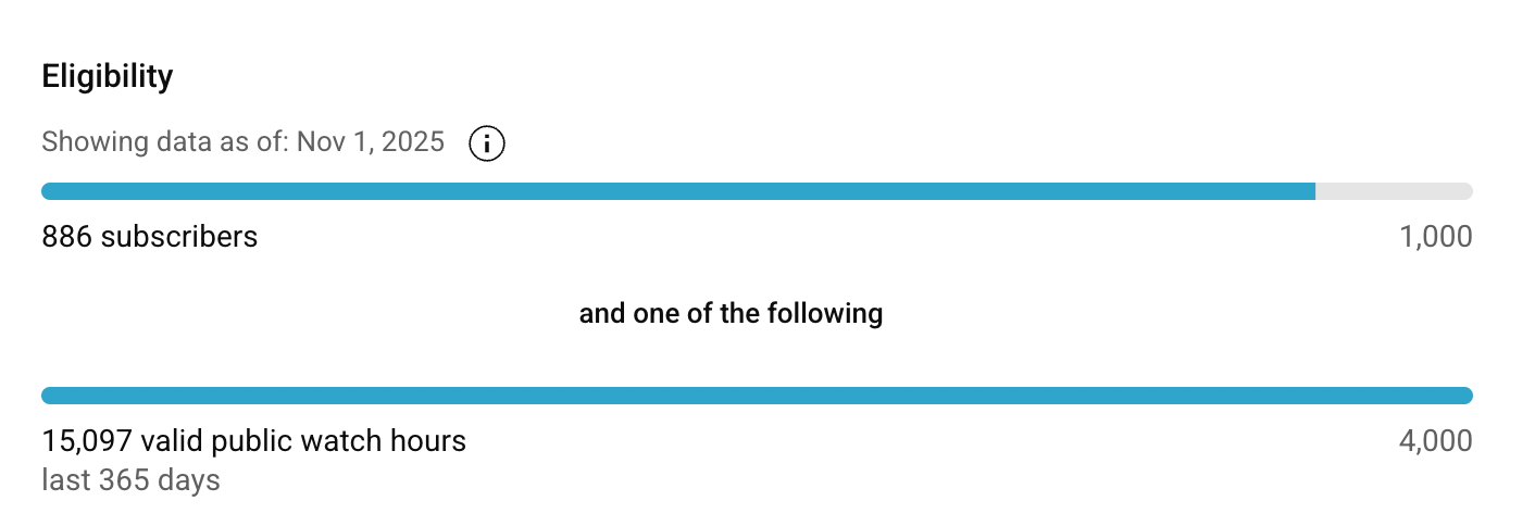 Quick update on the road to YouTube monetization: we’re only 114 subscribers away!